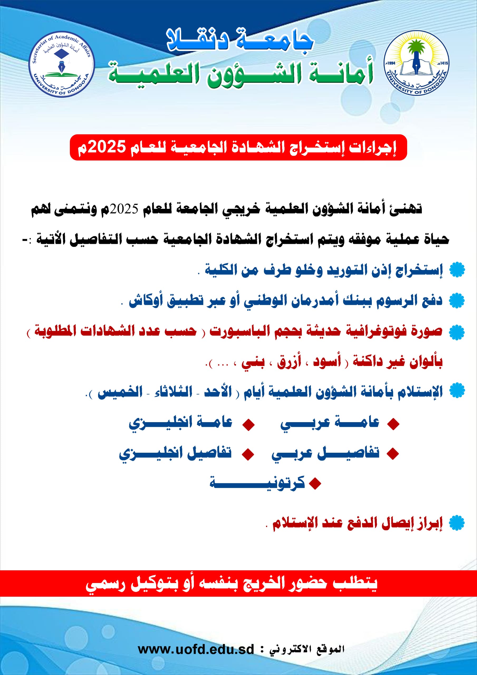 بسم الله الرحمن الرحيم الحمد لله الذي أمرنا بالرحمة والعطاء، وقال في محكم تنزيله: ﴿وَمَا تُقدِّموا لأنفسكم من خير تجدوه عند الله﴾، والصلاة والسلام على رسول الله ﷺ الذي قال: "الراحمون يرحمهم الرحمن" "ومن كان في حاجة أخيه كان الله في حاجته" أبنائي وبناتي، زملائي وزميلاتي في أسرة كلية الطب والعلوم الصحية، نقف اليوم أمام مسؤولية إنسانية عظيمة، وأمام لحظة تختبر ما نحمله في قلوبنا من رحمة، وما نحمله في مهنتنا من شرف. إخوتنا النازحون من الفاشر كما تعلمون وصلوا إلى محلية الدبة حاملين الألم، فاقدين المأوى، ولكنهم لم يفقدوا الأمل بالله وبقلوبنا الرحيمة.. أطفال يرتجفون برداً، أمهات أنهكتهن الأيام، وشيوخ ينظرون حولهم منتظرين يد رحمة.. وفي هذا الإطار، تطلق كليتنا قافلة طبية كبرى يومي الخميس والجمعة، بمشاركة نخبة من الاختصاصيين والاستشاريين ورابطة الطلاب، والجمعيات الطلابية، حاملةً معها الدواء، الأمل، والرحمة، لتواسي من فقدوا كل شيء إلا الأمل.. ولكن هذه القافلة لا تكتمل إلا بدعمكم ومساهمتكم.. ندعوكم لتقديم: تبرعات عينية: بطاطين، فرش، ملابس، مواد غذائية، مستلزمات صحية.. تبرعات نقدية: مهما كانت بسيطة، فرب جنيه أو شق تمرة يُحدث فرقاً كبيراً في حياة محتاج.. فلنجعل من هذه القافلة علامة فارقة.. ولنكن السند، العطاء، والرحمة، كما أمرنا الله.. تبرعاتكم ودعمكم ومشاركتكم امتداد لرسالة الكلية، رسالة إنسان قبل أن تكون رسالة طبيب.. نسأل الله أن يجعل هذه المبادرة نوراً في الدنيا وبركة في الآخرة، وأن يجزيكم خيراً، ويكتب عطاؤكم في ميزان حسناتكم. والسلام عليكم ورحمة الله وبركاته. د.كمال عبدالله عميد كلية الطب والعلوم الصحية جامعة دنقلا